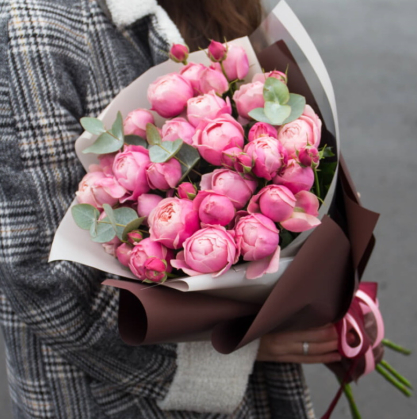 Пионовидные розы Силва Баблс с эвкалиптом